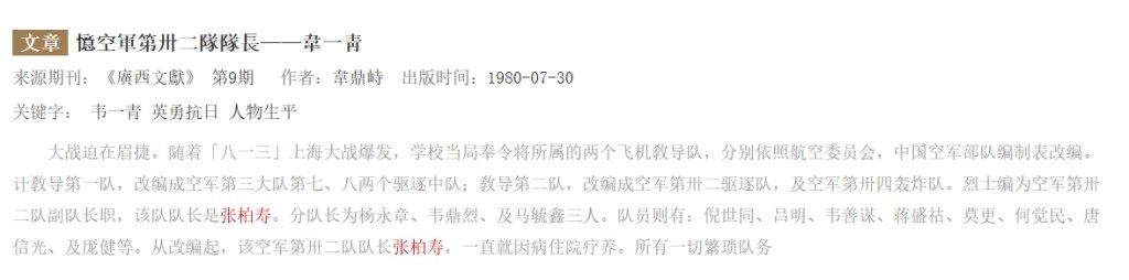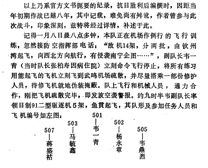清清楚楚写着张柏寿不在现场。说实话,1938年1月8-9日这次南宁空战,包括两天4轮战斗,全由韦一青带队,前后六名升空飞行员和交战经过,无论是国民党官方空军战史,还是战后多名亲历者的回忆录上都写得清清楚楚,涂改这个也是太肆无忌惮了。