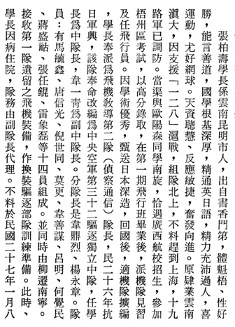 关于住院的考证告一段落,毕竟查一个不参战的战士的历史既困难又没有意思。后来我找到一份台湾期刊《广西文献》, 看到韦鼎峙的文章,才“得来全不费工夫”。韦鼎峙,广西航校飞行班第二期学员,空军三大队七中队队员、分队长,战后迁台,和族兄韦鼎烈两位作为同学中幸存的那一少部分,情感和责任心都很充沛,兢兢业业为留存旧日同学战友事迹找了很多资料,写了很多文章。其中1992年在《广西文献》连载六篇《广西航校同学印象记》,关于张柏寿的部分如下: