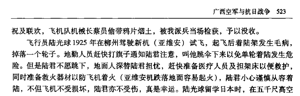 与张曼菱图中所述“冒险保机”类似的,有张柏寿同期一同赴日的同学陆光球的一件事,记录者是广西航校的第二任校长冯璜;我怀疑上图的“灵感”来自这里: