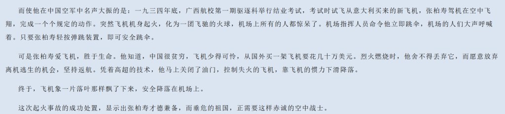 我先看张曼菱如何记录她堂伯父张柏寿的空战经历: