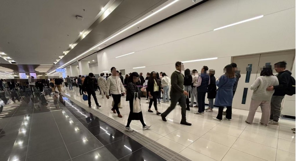 这是我第一次到亚洲国际博览馆。最近几年在香港机来机往,每次都看见它的广告,慢慢地虽然没有去过,但不知怎么形成了它是一个深色调的镜厅这么一种比较fancy的印象。结果到了一看,有点像机场的连廊,没有窗子,非常朴素,有点窄,特别长。连廊上到处拉着摆着绳圈、桌子、屏风、幕布什么的,而且有特别多工作人员,查核酸都没这么多。我上次见到这种密度的工作人员还是六年前去一个宣称刚刚脱贫的西部县城,下了高速以后,路两边就每隔两米站一个乡民摇着彩旗。因为我再两年前也就是八年前去同一个县城的时候,连屋子里都看不到人,所以我当时当场就大受惊吓,这是另一个故事了,回头再说。